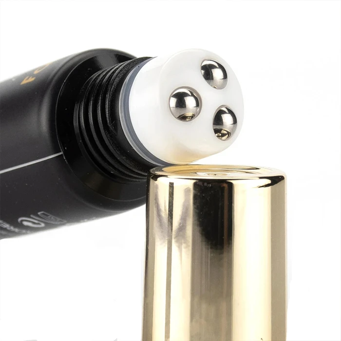 Выдавите небольшое количество средства и с помощью роллера нанесите на кожу вокруг глаз (сильно не нажимайте), мягкими круговыми движениями, выполняйте массаж роллером течение 1-2 мин. Можно наносить на зону носогубных складок.