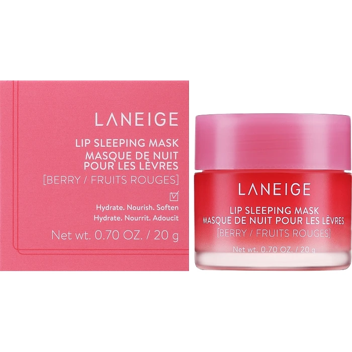 Представляем одну из самых популярных корейских ночных масок для губ — Laneige Lip Sleeping Mask. Удобный формат маленькой баночки легко помещается в дамскую сумочку и радует нежными ухожеными губами на протяжении всего дня, а не только при вечернем уходе.