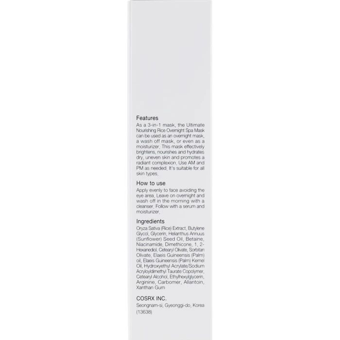 Oryza Sativa (Rice) Extract, Butylene Glycol, Glycerin, Helianthus Annuus (Sunflower) Seed Oil, Betaine, Niacinamide, Dimethicone, 1,2-Hexanediol, Cetearyl Olivate, Sorbitan Olivate, Elaeis Guineensis (Palm) Oil, Elaeis Guineensis (Palm) Kernel Oil, Hydroxyethyl Acrylate/Sodium Acryloyldimethyl Taurate Copolymer, Cetearyl Alcohol, Ethylhexylglycerin, Arginine, Carbomer, Allantoin, Xanthan Gum