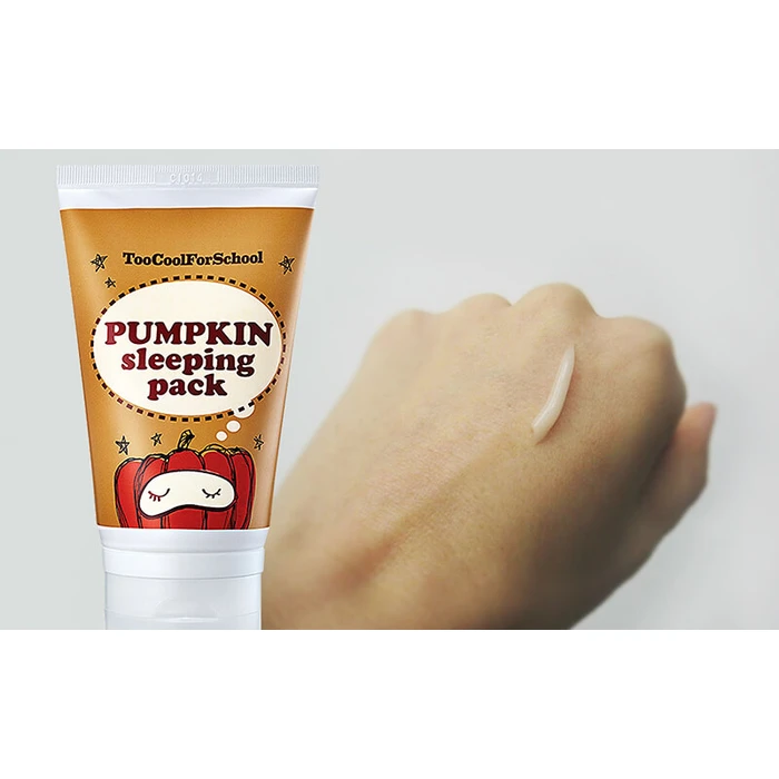 Маска Too Cool For School Pumpkin Sleeping Pack питает и увлажняет кожу в период сна. Эффект гладкой кожи достигается благодаря целому комплексу микроэлементов в семенах тыквы (цинк, медь, калий, марганец, кремний), витаминов С, D1, B2, B6, PP, каротину и салициловой кислоте. Обеспечивает отличное очищение от омертвевшей кожи, омолаживает и очищает.