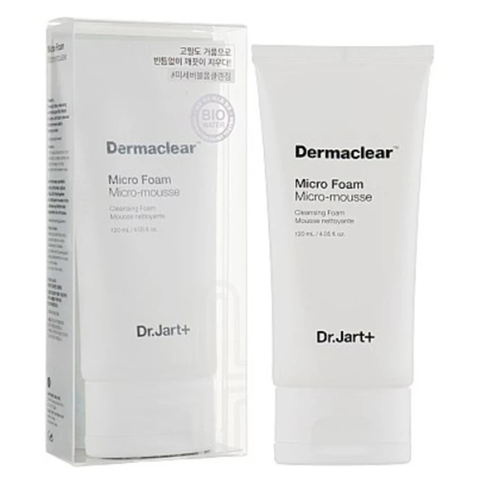 Пенка для умывания Dermaclear Micro Foam Mousse от известного бренда Dr.Jart+ с минеральной водой, пантенолом и питательным растительным комплексом эффективно очищает от загрязнений, удаляет макияж с кожи лица, не вызывая раздражения и не пересушивая эпидермис.