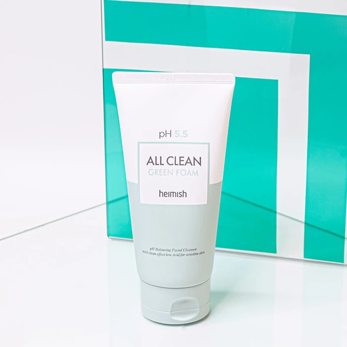 Очищающая пенка для умывания Heimish All Clean Green Foam эффективно удаляет загрязнения, не раздражая кожу. Он имеет слегка кислый рН 5,5, благодаря чему не нарушается ее гидролипидный барьер. Состав включает гидролат гамамелиса, экстракт центеллы и ежевики, которые увлажняют, способствуют заживлению мелких ран и предотвращают появление недостатков.