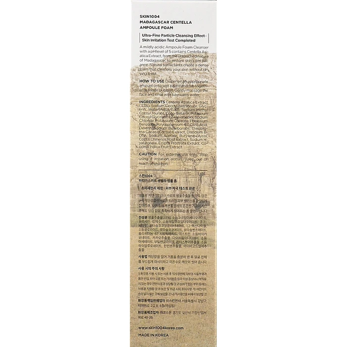 Centella Asiatica Extract(30%), Sodium Cocoyl Isethionate, Glycerin, Water(Aqua/Eau), Sodium Methyl Cocoyl Taurate, Coco-Betaine, Potassium Cocoyl Glycinate, 1,2-Hexanediol, Sodium Chloride, Potassium Cocoate, Potassium Benzoate, Polyquaternium-67, Citric Acid, Dextrin, Sodium Bicarbonate, Theobroma Cacao(Cocoa) Extract, Disodium EDTA, Sodium Acetate, Butylene Glycol, Coptis Chinensis Root Extract, Sodium Hyaluronate, Eclipta Prostrata Extract, Coccinia Indica Fruit Extract