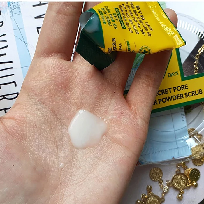 Скраб May Island 7 Days Secret Pore Clear Powder Scrub содержит 3 вида кислот, действие которых направлено на обновление и восстановление кожного покрова: