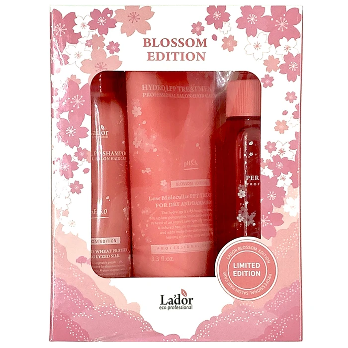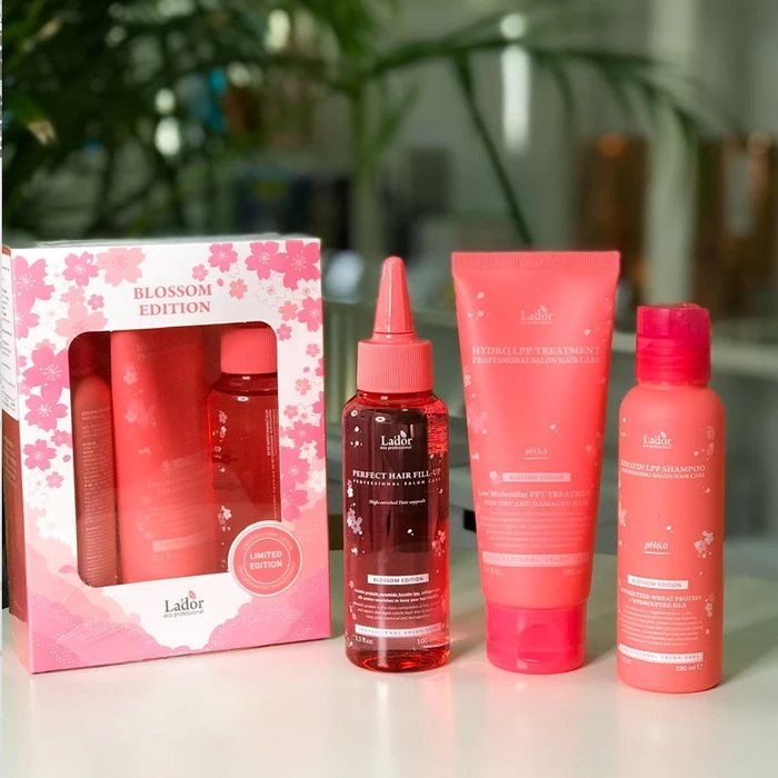 Средства для восстановления поврежденных волос с активным LPP-комплексом в наборе La'dor Blossom Edition (Shampoo+Tratment+Hair Fill-up) предназначены для быстрого лечения и восстановления локонов.