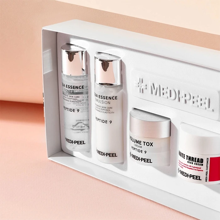 Набор миниатюр MEDI-PEEL Peptide Skincare Trial Kit с пептидами направлен на борьбу с возрастными изменениями кожи. Если ваша кожа теряет упругость и эластичность, вы замечаете морщины и потерю тургора, косметика с пептидами MEDI-PEEL поможет справиться со всеми проблемами.