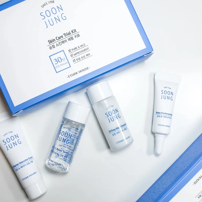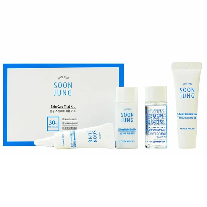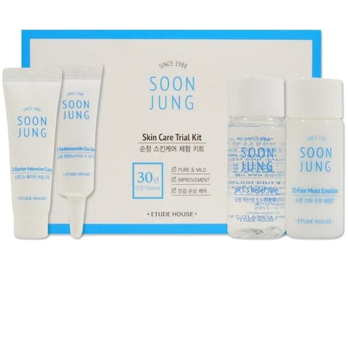 Набор уходовых средств для улучшения состояния чувствительной и раздраженной кожи Etude House Soonjung Skin Care Trial Kit комплексно оздоравливает эпидермис, укрепляет его иммунитет и восстанавливает оптимальный гидробаланс. Средства данного набора заметно уменьшают воспаления и покраснения. Защищают кожу от стресса, при этом не провоцируют появления сухости.