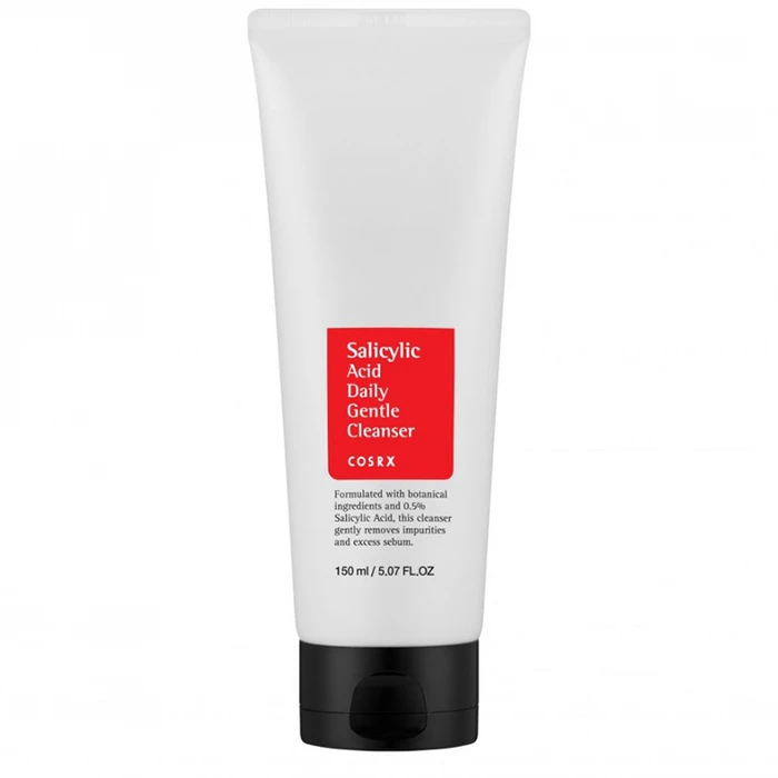 COSRX Salicylic Acid Daily Gentle Cleanser - пінка, що очищає з екстрактом чайного дерева, корою верби і натуральними рослинними BHA-кислотами в формі саліцилової кислоти з концентрацією 0,5% дозволяє ретельно очистити шкіру, одночасно м'яко отшелушивая її. Саліцилова кислота відлущує змертвілу шкіру, регулює роботу сальних залоз, має антисептичні та протівоугревие властивостями, має протизапальну дію, очищає і звужує пори, одночасно заспокоюючи роздратування і вирівнюючи тон шкіри. Косметичний засіб має кремоподібну консистенцію, яка легко розподіляється і в поєднанні з водою створює легку пінку.