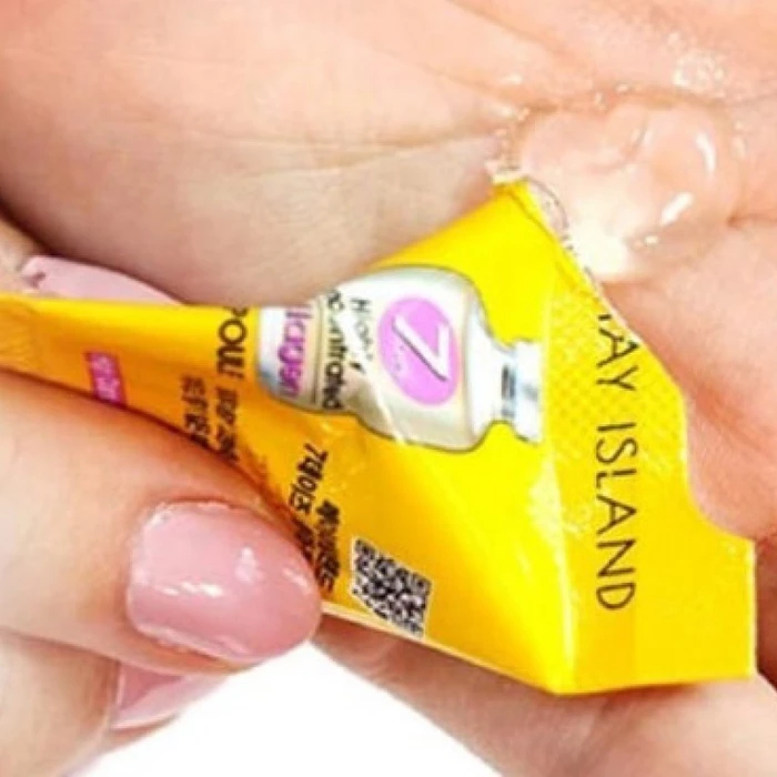 - зручна упаковка у вигляді трикутника невеликої ваги і обсягу легко поміщаються в косметичку або кишеню сумочки. Також засіб є неймовірно зручним під час відпустки - немає необхідності брати з собою багато важких і об'ємних баночок і флаконів, досить пари кількох легких і компактних саше.