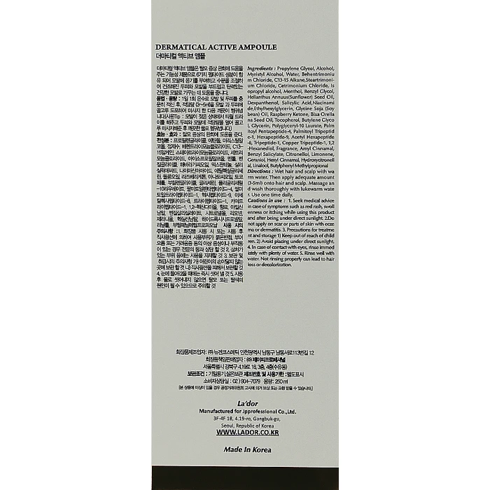 Propylene Glycol, Ethanol, Myristyl Alcohol, Purified Water, Behentrimonium Chloride, C13-15 Alkane, Steatrimonium Chloride, Cetrimonium Chloride, Isopropyl Alcohol, Menthol, Benzyl Glycol, Sunflower Seed Oil, Dex Panthenol, Salicylic Acid, Niacinamide, Ethylhexyl Glycerin, Dole Bean Oil, Raspberry Ketone, Anatose Oil, Tocopherol, Butylene Glycol, Glycerin, Polyglyceryl-10 Laurate, Palmitoyl Pentapeptide-4, Palmitoyl Tri Peptide-1, hexapeptide-9, acetylhexapeptide-8, tripeptide-1, copper tripeptide-1, 1,2-hexanediol, fragrance, amylcinnamal, benzyl salicylate, citronellol, limonene, Geraniol, Hexylcinnamal, Hydroxycitronelal, Linalul, Butylphenylmethylpropional