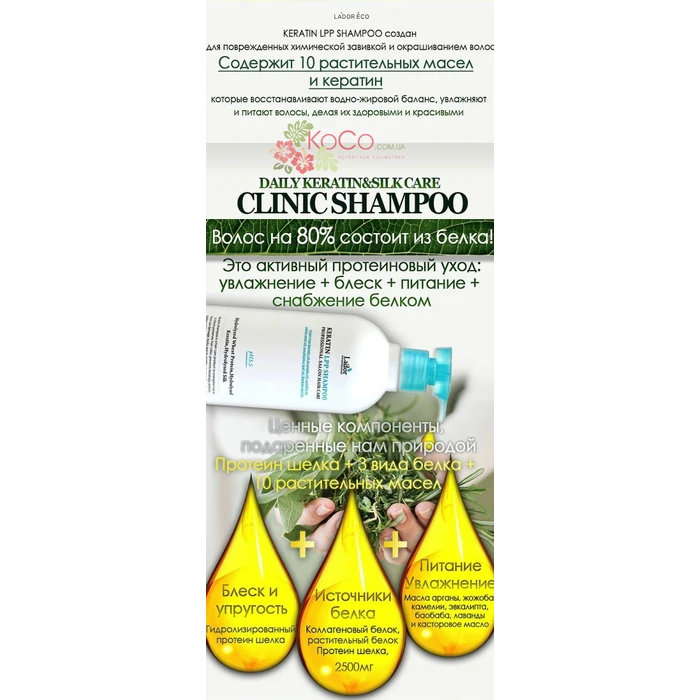 Основные ингредиенты: кератин, коллаген, масло жожоба, масло лаванды, экстракт камелии